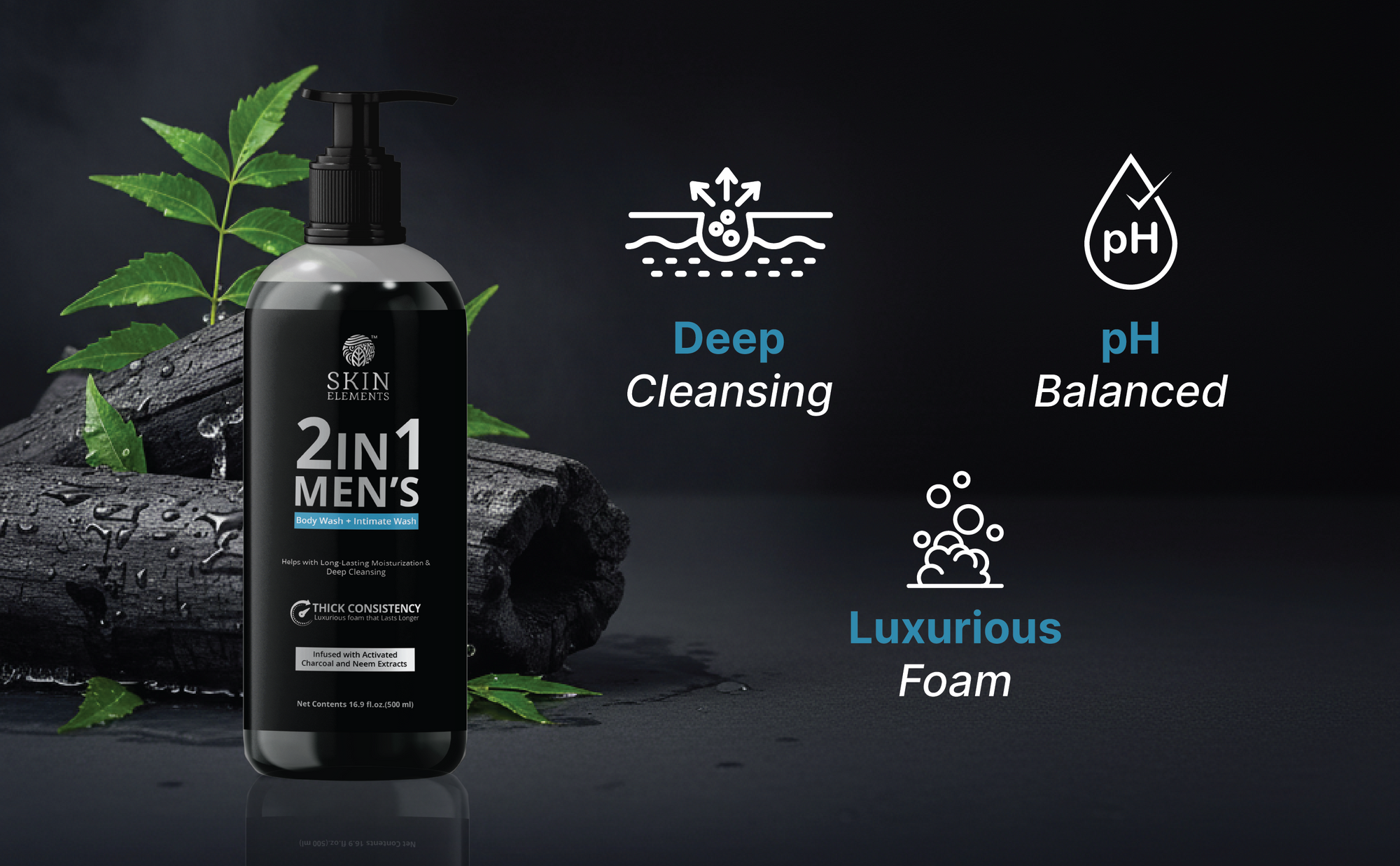 The 2-in-1 Men's Body Wash + Intimate Wash is designed for deep cleansing, hydration, and all-day freshness. Its dual-action formula ensures that it effectively draws out dirt, sweat, and odor while maintaining the skin’s natural moisture. This wash is gentle enough for daily use, making it ideal for both the body and intimate areas. It helps soothe skin and provides a long-lasting feeling of cleanliness and confidence.